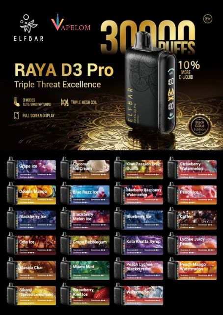 ELFBAR RAYA D3 PRO 30000 PUFFS: CUSTOM CLOUDS, PREMIUM FLAVOR
