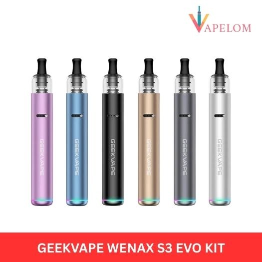 GEEKVAPE WENAX S3 Evo Pod Kit 1100mAh-returning with a giant leap to upgraded GEEKVAPE S cartridge and more intuitive LEDs. lt re-invented itself with compatibility with Soft-touch Drip Tip, Filter Drip tip, and M1 Plastic Drip Tip, a perfect cigarette alternative. With precise control for both airflow and output, this stylish vape pen provides a marvelous 2-day-use battery life.